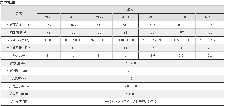 性能特點:MF系列脈沖布袋除塵器除了具有I型除塵效率高、處理風量大、性能穩(wěn)定、操作維修方便等特點外,MF系列
